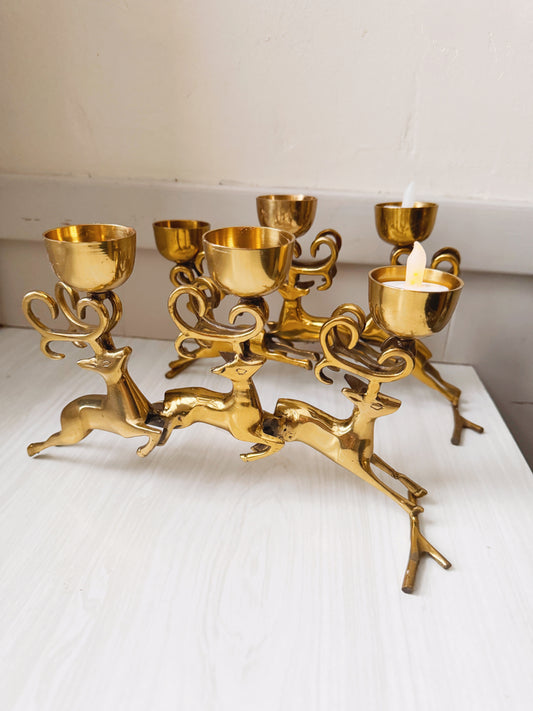 Brass Reindeer Tea Light Candleholders