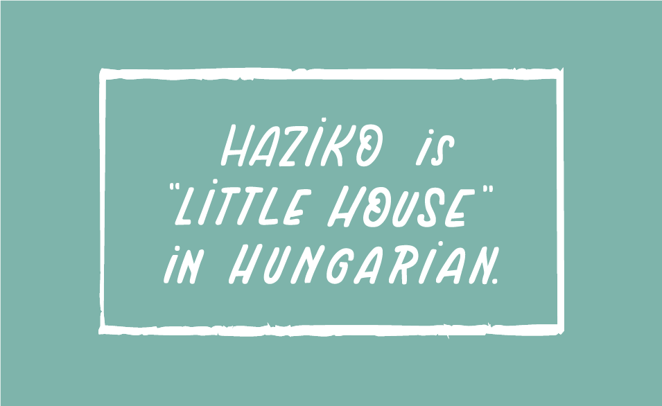 Haziko (pronouced "hah-zee-koh" in English) means little house in Hungarian. It represents the idea of home.