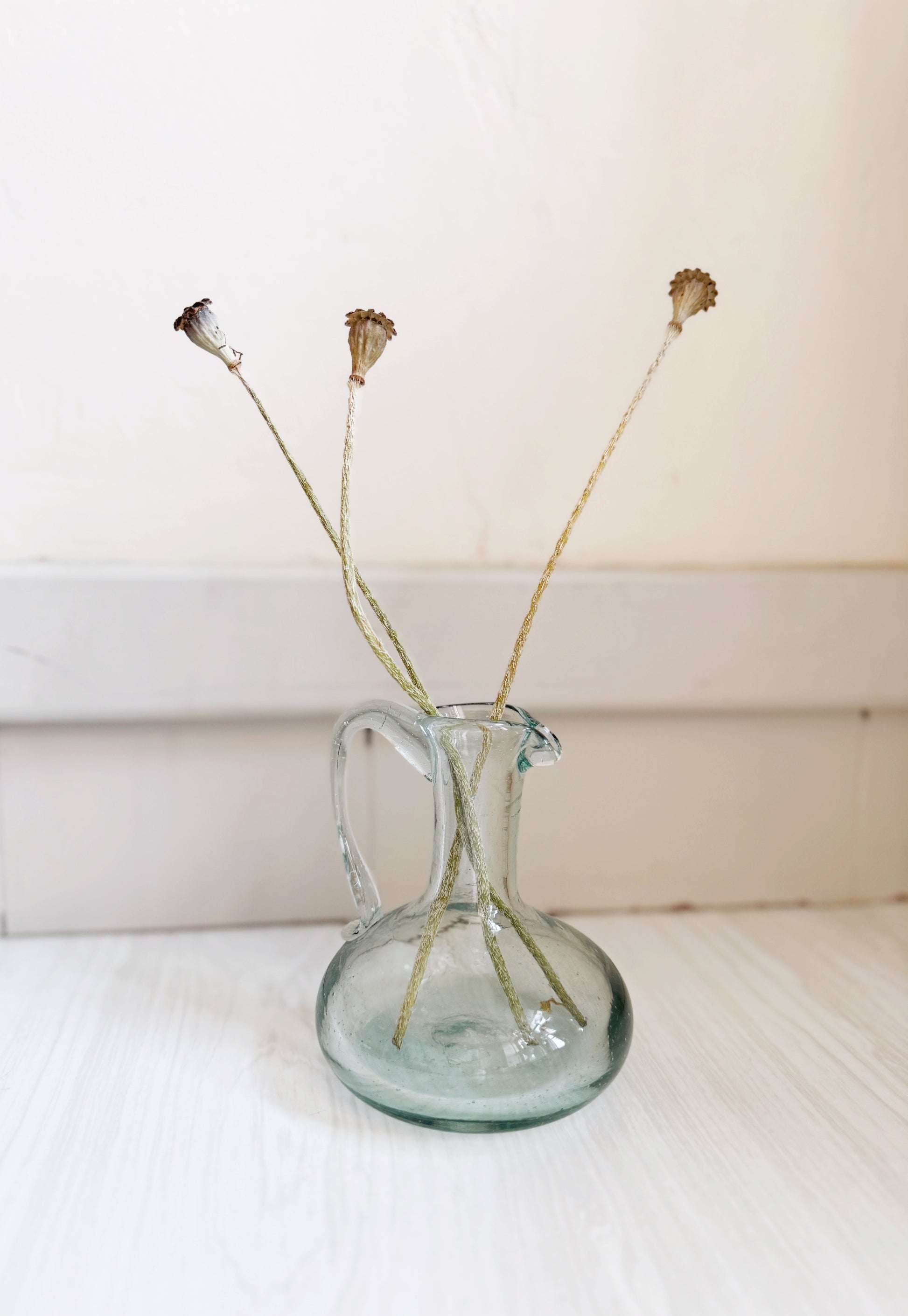 Small blown glass pitcher, could also function as a bud vase.